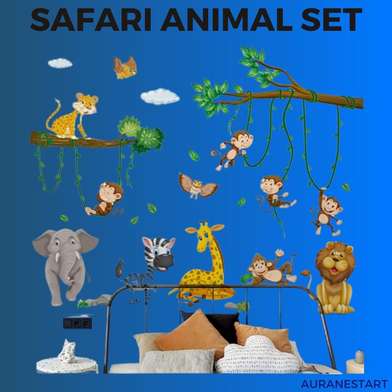 - Jungle Safari Animal Wall Stickers – Kids Room Removable Vinyl Décor