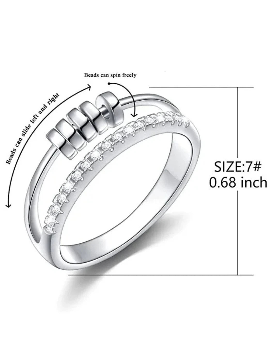 The ring features rotating fidget beads that glide smoothly under your fingers, offering a discreet way to release nervous energy and calm the mind. Perfect for moments of stress, anxiety, or restlessness, this spinner motion helps her stay centered, focused, and mindful — turning anxious habits into peaceful ones.